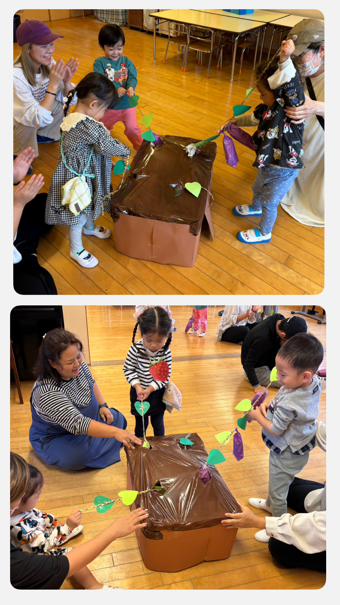 やきいもグーチーパーのお歌を歌ったり、いもほりバスの手遊びをしたり、おいもの体操をして